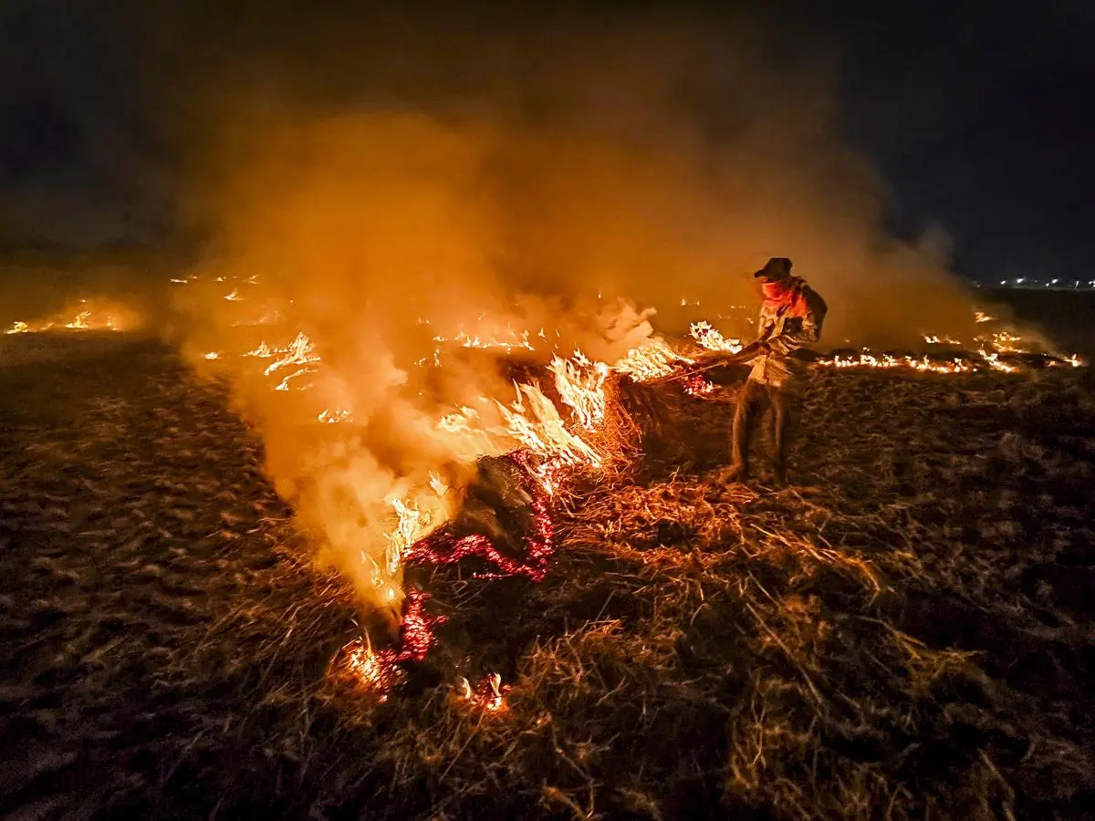 Methane produces when organic matter is burned. Such as during forest fires or the burning of crops.